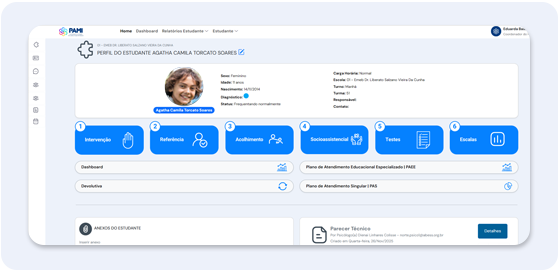 Acompanhamento especializado e integrado, otimizando a gestão de informações e o suporte aos estudantes atípicos.
